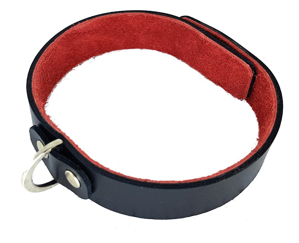 Ошейник кожаный чёрный узкий с полукольцом 25 мм