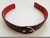 Нет в наличииОшейник из натуральной кожи.Подкладка выполнена из мягкой замши красного цвета. Регулировка размера осуществляется кнопками. Ширина 25 мм. Полукольцо для крепления поводка или аксессуаров