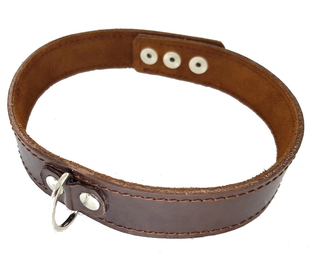 Ошейник кожаный коричневый узкий с полукольцом 25 мм
