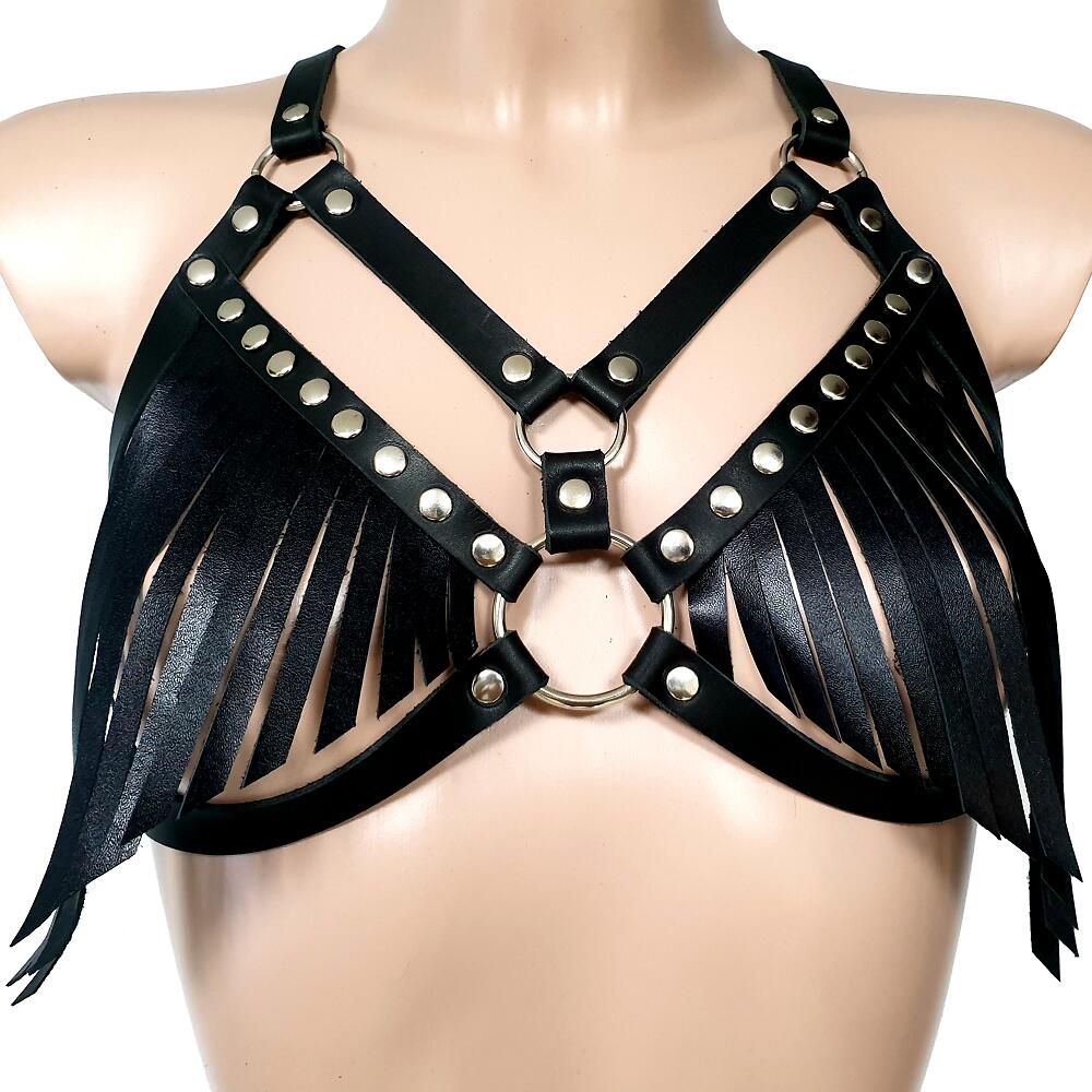 Сбруя-топ из натуральной кожи чёрная