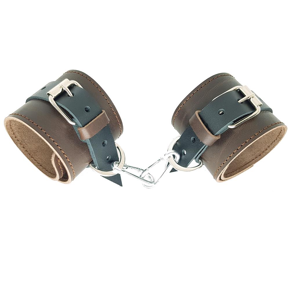 Наручники кожаные коричнево-чёрные
