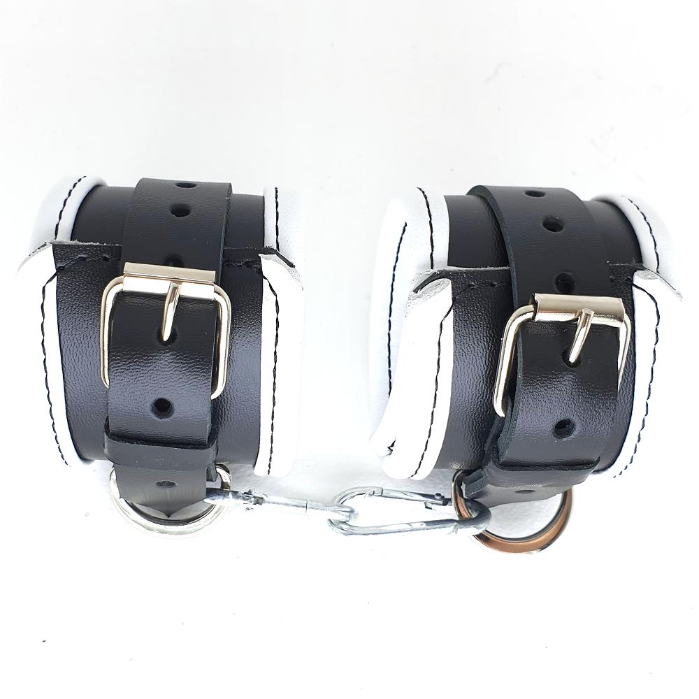Наручники кожаные чёрно-белыеdm-le-0192600 руб.Нет в наличииНаручники из натуральной кожи, жёсткая основа, отделка мягкой белой кожей. Соединители - карабины