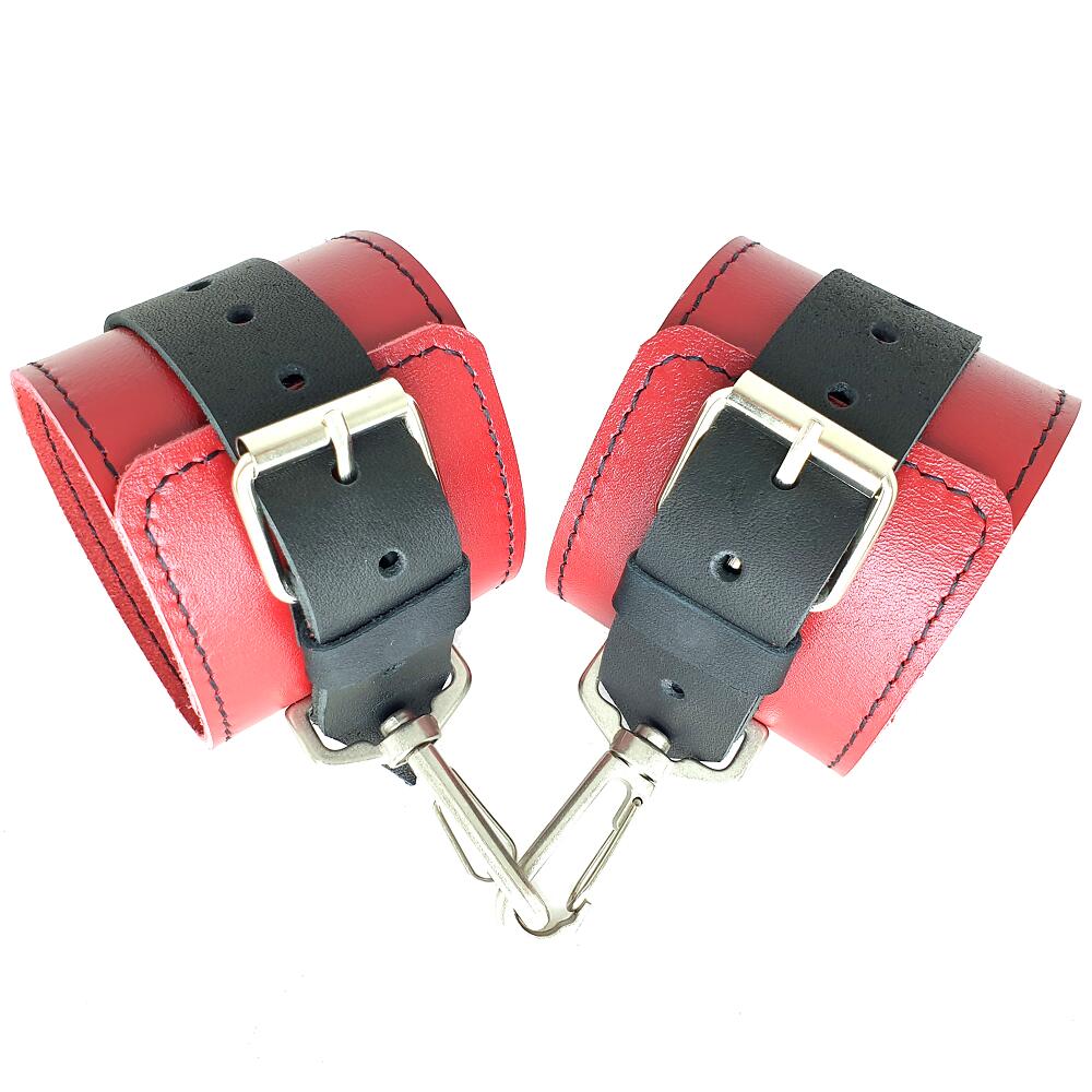 Наручники из натуральной кожи красно-чёрные