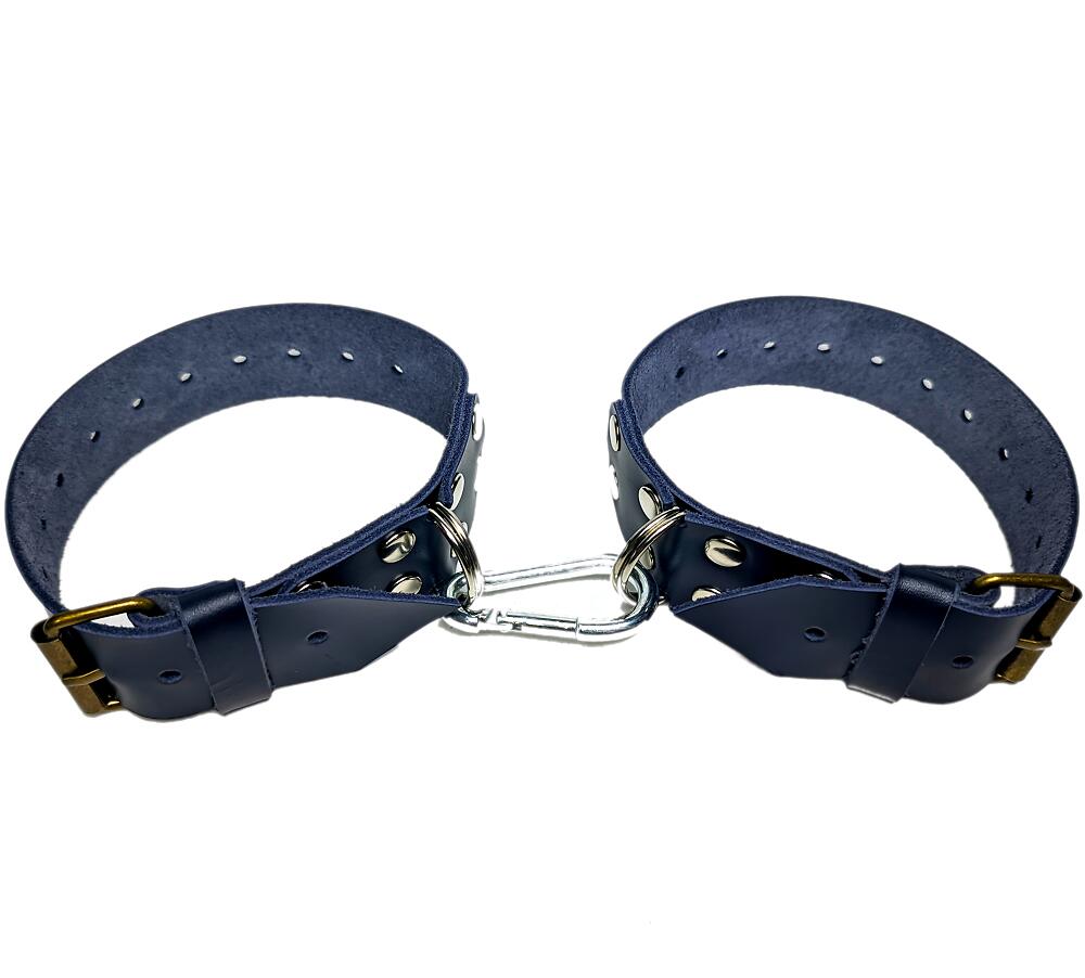 Наручники кожаные тёмно-синие простые